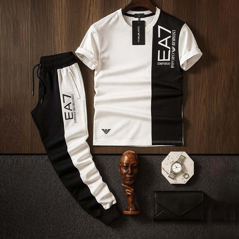 ست تیشرت شلوار EA7 سفید مشکی مدلWE82